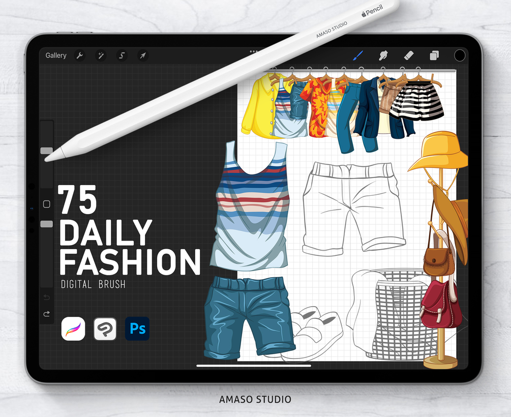 75 Daily Fashion Wear Stamp for Procreate, Photoshop and Clip Studio Paint